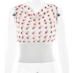 Women’s Polka Dot Oblique Shoulder Crop Top – Summer Patchwork Chiffon Sleeveless Lace-Up Backless Blouse Casual Streetwear