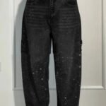Women’s Shiny Straight-Leg Jeans with Pockets – Loose Wide-Leg Street Style Trouser